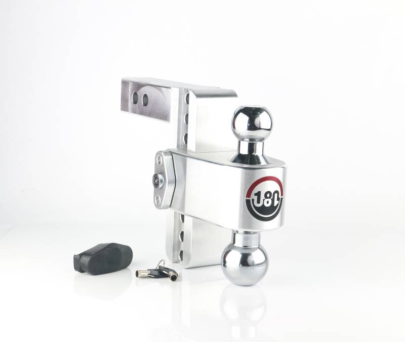 180 Hitch - Drop Hitch w/Chrome Combo Ball - 6" Drop for 2" Shank The 180 Hitch by Weigh Safe is the definition of adaptability and ease. Made of aircraft-grade 6061 aluminum, it's available in stainless steel or chrome-plated steel combo tow balls! This hitch can be used in both the drop and rise positions! Built-in gauge not available with this 180 Hitch model. Chrome-Plated Steel Combo Ball: Quickly switch from a 2-5/16" tow ball to a 2" tow ball by flipping the slider 180 degrees 6" Adjustable Ball Mount: 6” drop & 7" rise (hitch can be used in the drop or rise position), adjusts in 1" increments so you get the perfect position for any trailer height Industry Leading Weight Ratings: rated for 12,500 lbs. max GTW and 1,500 lbs. MTW in the drop or rise position Stowability: Can be rotated under the vehicle and stored while not in use. Excludes 3" shank sizes Dual-Pin Lock: Includes an anti-theft lock to secure the hitch and maintain the tow ball in the correct height position