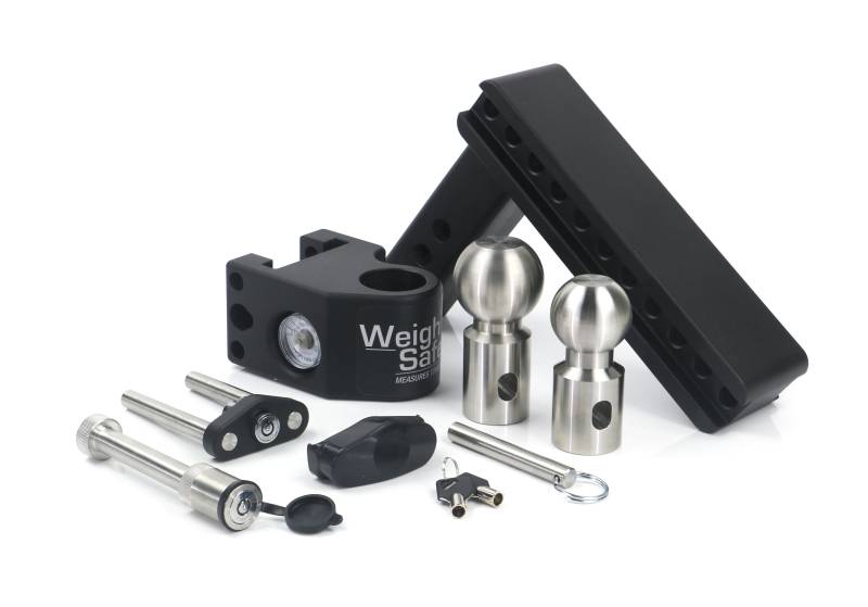 Steel Weigh Safe Adjustable Drop Hitch - 8" Drop & 2" Shank w/ Hitch Pin Lock The Steel Weigh Safe Adjustable Ball Mount provides “Towing Peace of Mind” with a high-grade steel construction and stainless steel tow balls. This hitch boasts some of the highest ratings in the industry and can be used in both the drop and rise positions. Safe Towing: Built-in hydraulic scale measures tongue weight to ensure 10-15% of the gross trailer weight is on the tow ball. This prevents trailer sway and jackknifing to promote "Towing Peace of Mind." 8" Adjustable Ball Mount: 8” drop & 9" rise (hitch can be used in the drop or rise position), adjusts in 1" increments so you get the perfect position for any trailer height Industry Leading Weight Ratings: rated for 15,000 lbs. max GTW and 1,500 lbs. MTW in the drop or rise position Stowability: Can be rotated under the vehicle and stored while not in use Keyed-Alike Locks: Includes a dual-pin lock and hitch pin lock keyed with the same key code - one key for all locks