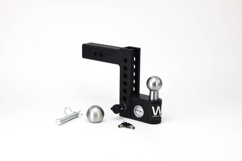Aero Hitch Adjustable Ball Mount - 6" Drop Hitch, 2" Shank The Weigh Safe Aero Hitch features a streamlined, sleek design while incorporating Weigh Safe’s built-in gauge to measure tongue weight. This hitch constructed of high-grade steel with a stainless steel tow ball and offers easy height adjustability for any trailer size. Can also be used in the rise position. Safe Towing: Built-in hydraulic scale measures tongue weight to ensure 10-15% of the gross trailer weight is on the tow ball. This prevents trailer sway and jackknifing to promote "Towing Peace of Mind." 6" Adjustable Ball Mount: 6” drop & 7" rise (hitch can be used in the drop or rise position), adjusts in 1" increments so you get the perfect position for any trailer height Industry Leading Weight Ratings: rated for 12,500 lbs. max GTW and 1,500 lbs. MTW in the drop or rise position Single Pin Lock: Includes an anti-theft lock to secure the hitch and maintain the tow ball in the correct height position Long-Lasting: Lifetime warranty on the scale and limited lifetime warranty on all other components.