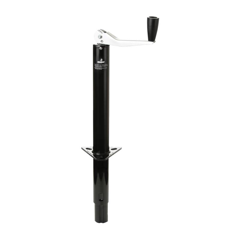 Man A-Frame Top Wind 1000 LB Cap Bolt-On or Weld-On Black Steel Inc Mount Brackt Husky A-frame trailer jacks are designed in two styles: top-wind and side-wind, for use with all trailers. All Husky A-frame jacks come with a mounting bracket for easy bolt-on or weld-on mounting through A-frame mounted couplers. Husky jacks are availabl Finished In A Durable Powder Coat Finish And Zinc Plating Easy Bolt-On Or Weld-On Mounting Through A-Frame Mounted Couplers Limited 1 Year Warranty