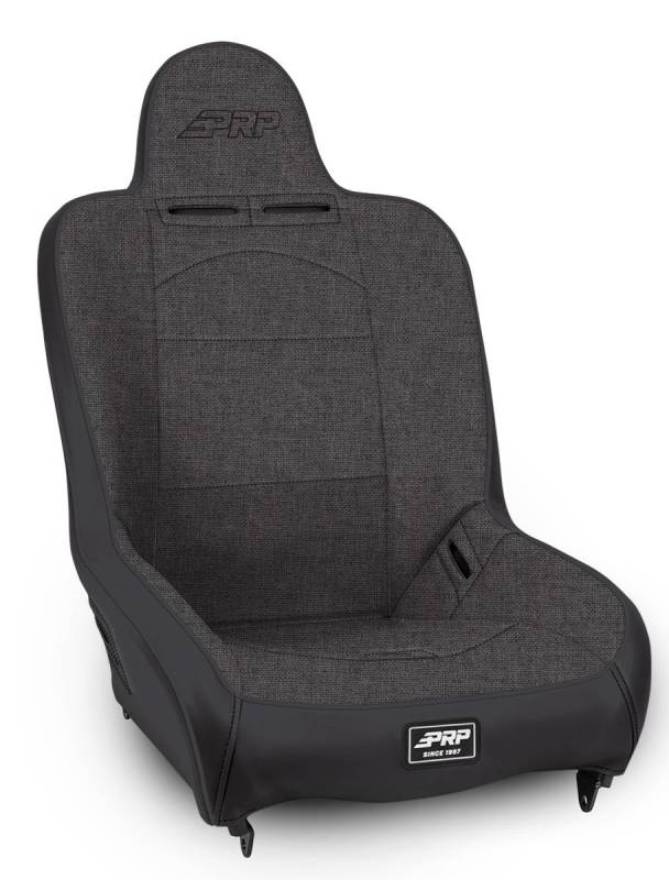 Premier High Back Suspension Seat With 7" of containment, the Premier is PRP's versatile, all-around, off-road suspension seat. A great classic seat for Jeeps, buggies, trail rigs, and prerunners. Medium level containment on the sides keeps you secure when the ride gets rough, but still makes it easy to get in & out of the vehicle. The vinyl-coated nylon suspension liner and dual-density foam decrease the impact on the body, reducing the fatigue you feel after a long day in the dirt or dunes. The bottom tabs easily bolt to PRP’s series of mounts built for Jeeps, Broncos, Ford Rangers, and more. The seat features Tweed Center, Vinyl Back and Vinyl Piping. Available in several different color combinations.