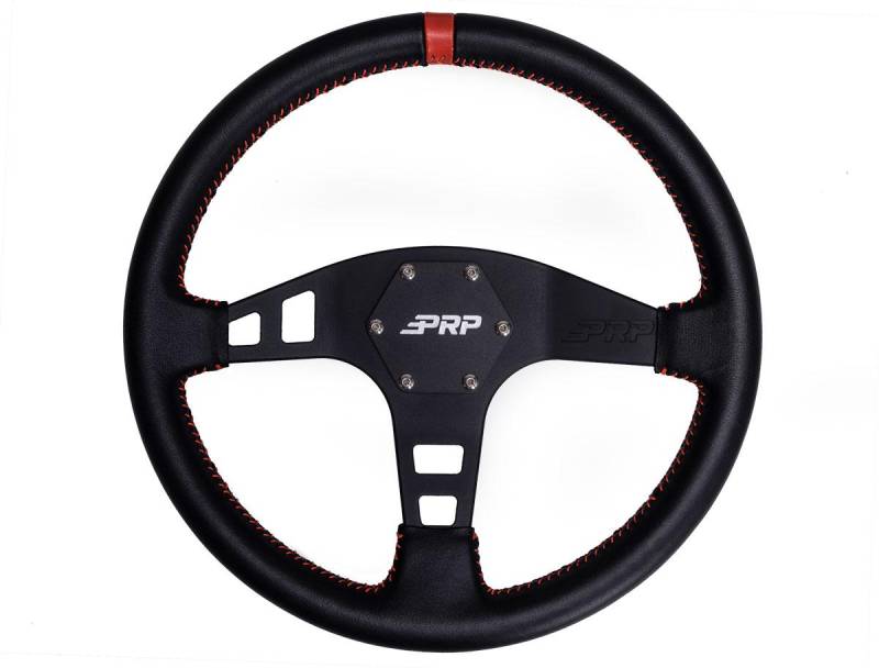 PRP's Steering Wheels are built for off-road. Constructed from high strength aluminum, with a matte black finish for extra durability... and to make it look cool. The steering wheel has a 6-point bolt pattern, specifically chosen because it fits the majority of aftermarket quick releases. Comes with a PRP emblem plate.