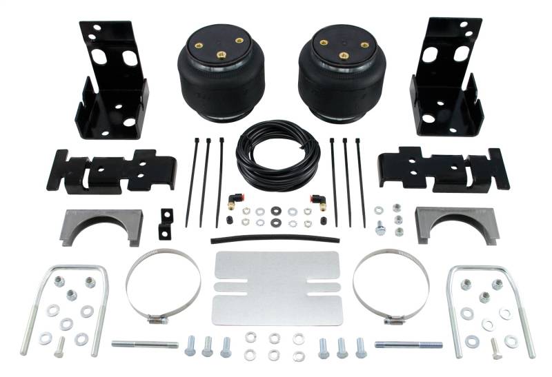 LoadLifter 5000 ULTIMATE with internal jounce bumper LoadLifter 5000 ULTIMATE adjustable air spring kits feature all of the benefits of our heaviest rated air spring with the addition of an internal jounce bumper inside the spring for the ultimate in ride comfort. An Air Lift exclusive product! Fits vehicles with in-bed hitches. Tow and haul the heaviest loads with safety and comfort with LoadLifter 5000 ULTIMATE. Works with vehicle's leaf springs to provide up to 5,000 lbs. of rear load leveling capacity and keeps the vehicle riding stable, level and comfortable whether loaded or unloaded. Fully adjustable from 5 to 100 PSI. The closed-cell urethane foam jounce bumper inside the ULTIMATE air springs provide a cushion of air that absorbs shock, eliminates harsh jarring on rough roads and protects vehicles carrying heavy loads. Never bottom out again with the ULTIMATE! LoadLifter 5000 ULTIMATE air springs are maintenance free! Safely run with zero air pressure because of the internal jounce bumper. Replaces factory jounce bumper that is sometimes removed when adding air springs. Requires no drilling into frame! Includes industry-exclusive 60 Day No Questions Money Back Guarantee! Includes the most comprehensive Lifetime Warranty in the industry---covers all kit contents including brackets, fittings and air line. Air springs are built like a tire and are reinforced by durable, 2-ply fabric for maximum strength. Exclusive upper and lower roll plates included. Protect the springs from sharp edges, such as brackets or the frame. The kit includes 2 air springs, brackets, air lines, Schrader valve and all of the hardware needed for installation. Includes fully illustrated instruction manual. Add an Air Lift on-board air compressor system to inflate and deflate air springs with the touch of a button from inside or outside of the vehicle. Exclusive internal jounce bumper inside springs absorbs shock Up to 5,000 lbs. of load-leveling capacity (Note: Do not exceed vehicle's GVWR) Maintenance free! Run safely with zero air pressure. Eliminates harsh jarring on rough roads Air adjustable from 5 to 100 PSI