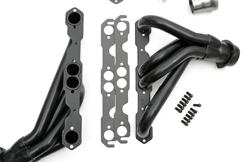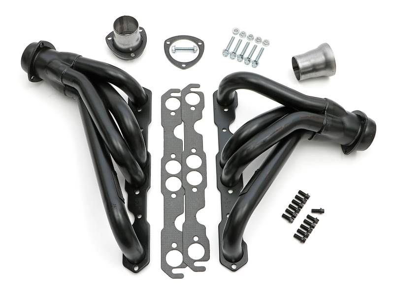 Handcrafted, Mild Steel Construction. The Mid-Length Tube Header Design Provides Significantly More Low and Mid-range Power than Cast Manifolds, and Provide Better Ground Clearance And Component Compatibility Than Long Tube Headers. Ball & Socket Collector Design requires No Gasket, and Allows For More Exhaust System Misalignment than Old School, Gasket-Style Header Collectors Includes All The Necessary Mounting Hardware, Gaskets and Reducers (exhaust adapters) Limted Lifetime Warranty On Construction, Five Year Warranty on Factory-Applied Header Coating!Details