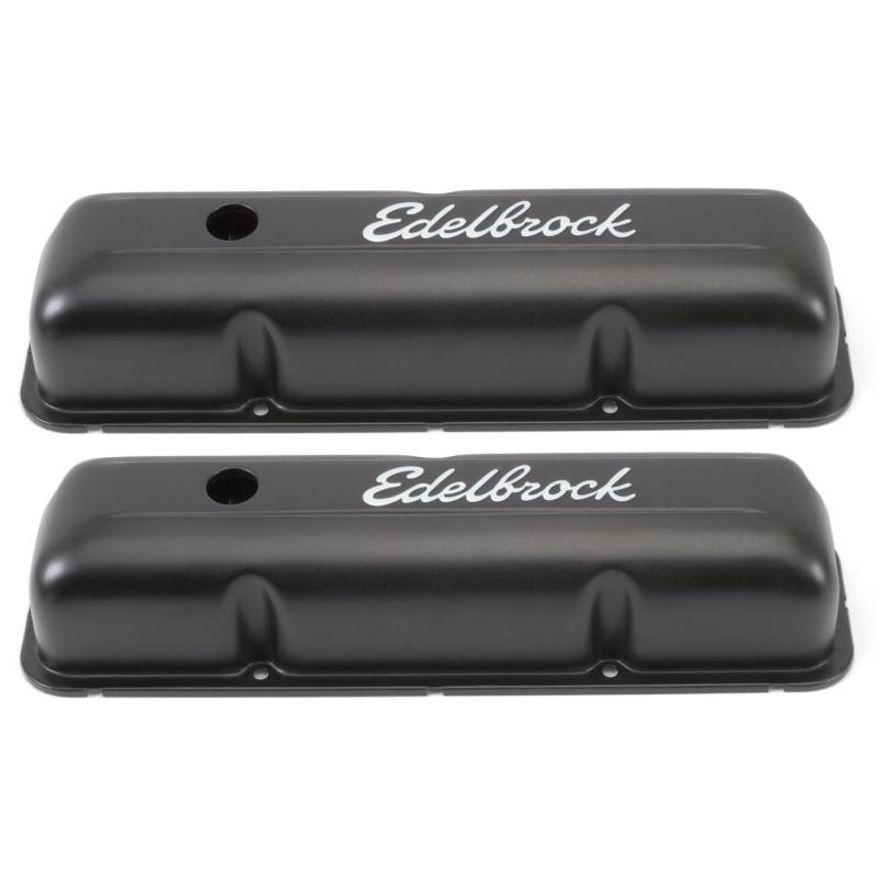 The Edelbrock #4623 Signature Series Valve Covers are designed for Ford FE 332-352-360-390-406-410-427-428 V8 '58-76 applications. Engineered for function and styled for great looks, Signature Series valve covers have stock-style breather baffles that prevent oil passage to the PCV valve. These quality valve covers accept all emissions equipment, including PCV valve holes. Rubber grommets for the breather and PCV valve holes are included. Matching breathers sold separately.