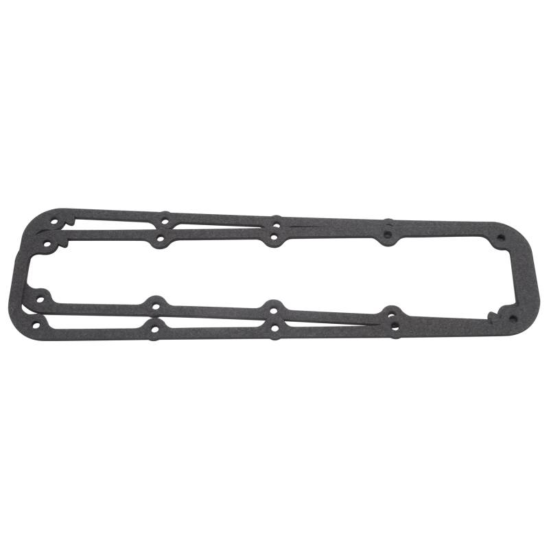 The Edelbrock valve cover gaskets #7593 provide excellent sealing integrity and conformability for easy installation. The multi-layer construction has two highly compressible, high rubber content, fiber-reinforced outside layers which are chemically bonded to a high strength composite core. This unique core-reinforced construction has a radial strength to resist high-vacuum or blow-out conditions. Edelbrock valve cover gaskets are an Edelbrock product.
