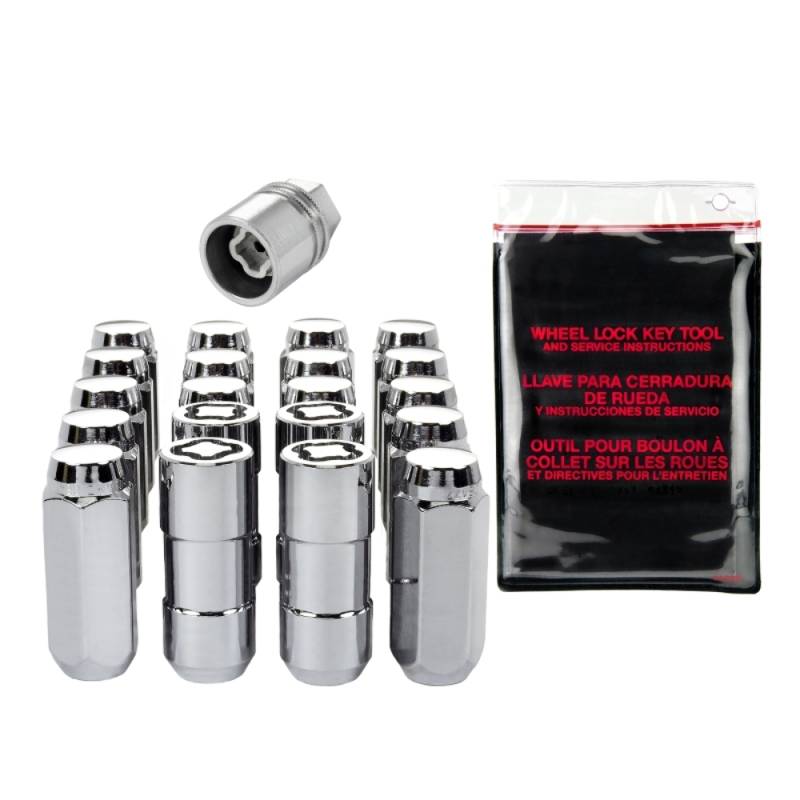 Cone Seat Exposed Style Wheel Installation Kit-Chrome The convenient way to order wheel locks and lug nuts; Contains all the hardware that you need to install 4 wheels and tires.; McGard manufactures wheel locks and lug nuts in the USA to meet or exceed O.E.M. standards for safety and durability.; Presently, McGard is an Original Equipment wheel lock supplier to most automobile brands around the world.; These easy-to-use, one-piece wheel locks function like regular lug nuts, but require a special key tool for installation and removal.; The computer generated key designs allow for an infinite number of key patterns.; McGard lug nuts are guaranteed for life not to rust, chip or peel.; Designed and built for the real world. Think about it, harsh elements, nasty corrosive wheel cleaners, overzealous impact guns, loose fitting lug wrenches and lead-foot drivers. This kind of treatment destroys ordinary lug nuts.; McGard lug nuts can take the punishment and keep your wheels looking beautiful.; Every McGard wheel lock and lug nut is fully machined from restricted chemistry steel made specifically for McGard and through-hardened for its unsurpassed level of security and safety.; For use with steel or aluminum wheels with exposed decorative lug nuts that are tapered at the bottom. This product may contain globally sourced materials/components.