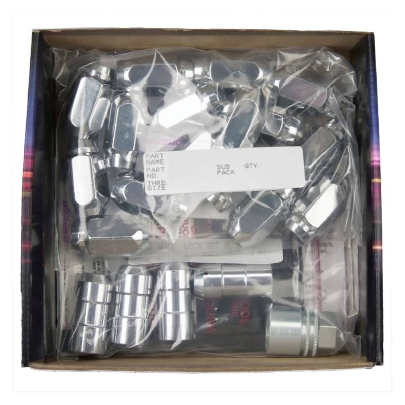 Cone Seat Exposed Style Wheel Installation Kit-Chrome The convenient way to order wheel locks and lug nuts; Contains all the hardware that you need to install 4 wheels and tires.; McGard manufactures wheel locks and lug nuts in the USA to meet or exceed O.E.M. standards for safety and durability.; Presently, McGard is an Original Equipment wheel lock supplier to most automobile brands around the world.; These easy-to-use, one-piece wheel locks function like regular lug nuts, but require a special key tool for installation and removal.; The computer generated key designs allow for an infinite number of key patterns.; McGard lug nuts are guaranteed for life not to rust, chip or peel.; Designed and built for the real world. Think about it, harsh elements, nasty corrosive wheel cleaners, overzealous impact guns, loose fitting lug wrenches and lead-foot drivers. This kind of treatment destroys ordinary lug nuts.; McGard lug nuts can take the punishment and keep your wheels looking beautiful.; Every McGard wheel lock and lug nut is fully machined from restricted chemistry steel made specifically for McGard and through-hardened for its unsurpassed level of security and safety.; For use with steel or aluminum wheels with exposed decorative lug nuts that are tapered at the bottom. This product may contain globally sourced materials/components.