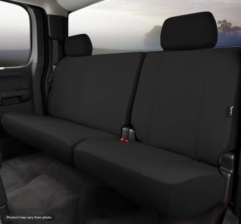 SP80 Series - Seat Protector Polyester Custom Fit Rear Seat Cover - Black SP80 Series Seat Protector custom fit seat covers are engineered for the ultimate in seat protection for heavy commercial use. An advanced design creates a dynamic state-of-the-art custom interior. On vehicle testing of all Fia custom fit seat covers ensures an exact fit each time. Super- Grip is the slip resistent fastening system that incorporates quick release belt and buckle fasteners, zippers and velcro, making installation quick and easy. The form fit wrap around design that is accomplished through multi-directional stretch trim material molds the cover to the contours of your seat. The commercial grade double stitched polyester material is hand washable as well as lightfast and colorfast. Custom formed seat belt and head rest openings, along with center console covers add to the original equipment custom look. Head rest covers included. Available in Black, Gray and Taupe. State-of-the-Art Custom Interior Advanced Design Super-Grip Technology Quick and Easy Installation Wear Resistant Fabrics