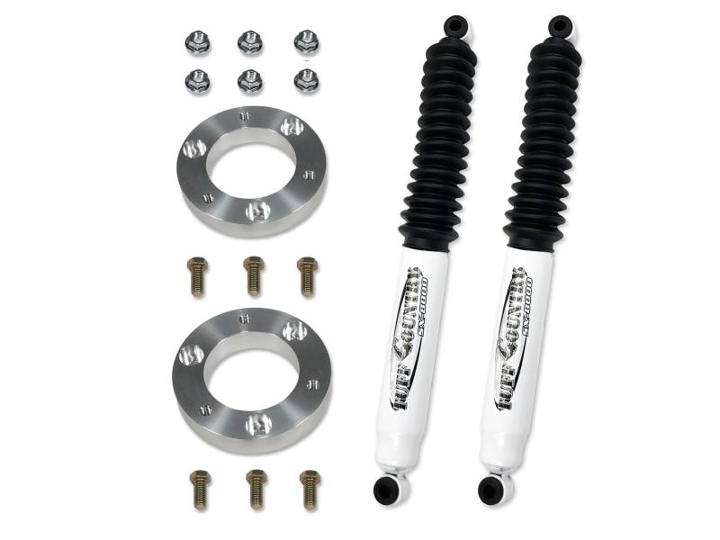 This simple to install Tuff Country 12000KN leveling kit for the GM 1500 will raise the front end 2 inches. This is done by installing the included spacers above the factory strut / coils. No need to replace struts or shocks, no strut disassembly required.