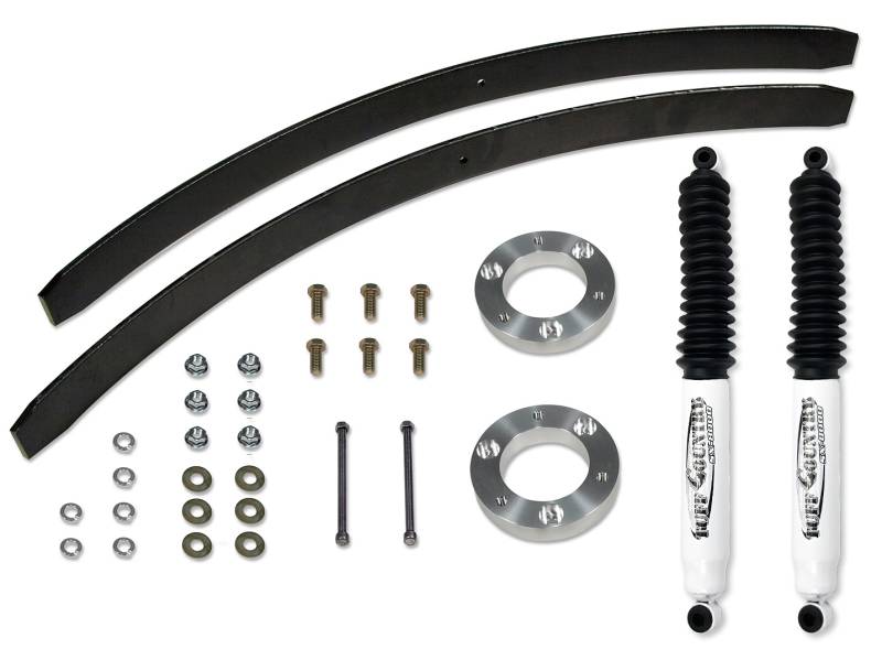 Gain additional tire clearance with this Tuff Country EZ-Ride Suspension Chevy/GMC 1500 2 inch lift kit. This lift kit uses a combination of upper coil/strut spacers and rear add-a-leafs to get 2 inches of lift. Once installed the front end will be slightly lower than the rear.