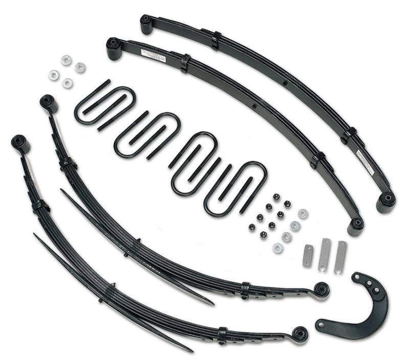 - Includes: 2) Heavy Duty front leaf springs, 2) EZ-Ride rear 52 inch long leaf springs, 1) Drop steering arm, 4) Rear u-bolts, 4) Front u-bolts, 1) Brake line extension kit, 2) Hardware bag, 4) Front leaf spring eye bolts, 4) Rear leaf spring eye bolts