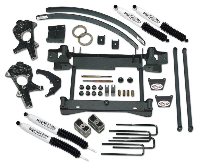 Differential drop brackets and torsion bar drop brackets keep everything in alignment. Also included are lateral compression arms which along with the one-piece subframe strengthen and stabilize the front end. Tuff Country has been producing quality suspension products for over 25 years and backs all lift kits with a limited lifetime warranty.