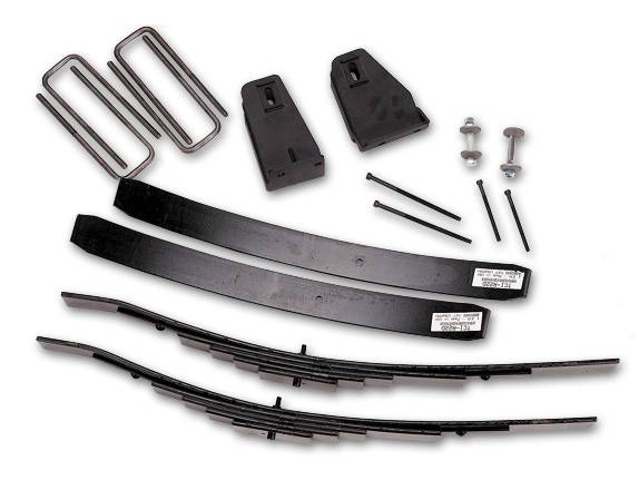 - Includes: 2) Front leaf packs, 2) Axle Pivot Brackets (w/cam bolts), 2) Rear add-a-leafs, 4) Front U-bolts, 1) Hardware Bag
