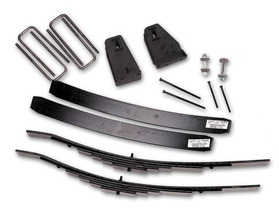 - Includes: 2) Front leaf packs, 2) Axle Pivot Brackets (w/cam bolts), 2) Rear add-a-leafs, 4) Front U-bolts, 1) Hardware Bag