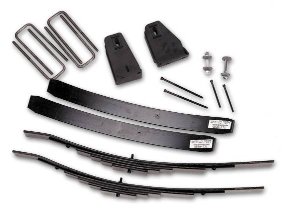 - Includes: 2) Front leaf packs, 2) Axle Pivot Brackets (w/cam bolts), 2) Rear add-a-leafs, 4) Front U-bolts, 1) Hardware Bag