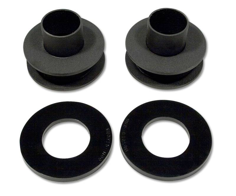 Needing to level the front end of your Ford Super Duty F250 with the rear? This simple to install Tuff Country 22970 Leveling Kit is the perfect solution. Included are (2) coil spring spacers that mount above your factory coil springs to lift the front of the Super Duty 2.5 inches. This maintains a factory ride and will allow installation of 33 inch x 12.5 inch tires. Made of 1/4 inch steel and powder coated for strength and durability.