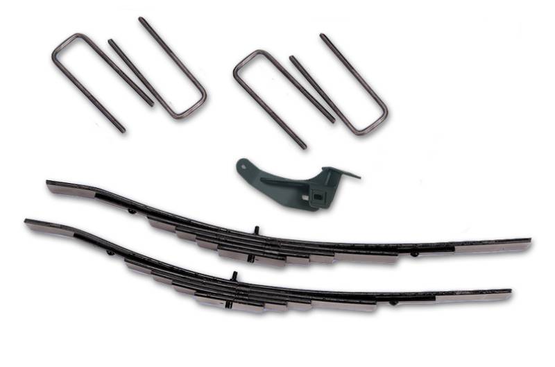 Needing to level the front end of your Ford Super Duty F250/F350 with the rear? This simple to install leveling kit by Tuff Country is a great solution. Included are (2) front leaf packs that are added to existing front leaf springs. By using the spring pack most of the lift height is added from the thickness of the leaf pack, not by re-arching the stock springs. The benifit to you is a level Ford truck with a near factory ride. A front track bar relocating bracket is included to maintain proper alignment along with extended front u-bolts.
