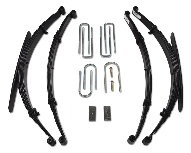 - Includes: 2) Front leaf springs, 2) Rear leaf springs, 1) Steering Block, 4) Rear u-bolts, 2) Brakeline relocationg kit, 2) Axle shims and required hardware