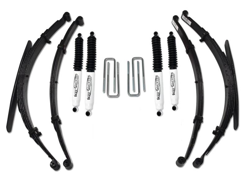 - Includes: 2) Front leaf springs, 2) Rear leaf springs, 1) Steering Block, 4) Rear u-bolts, 2) Brakeline relocationg kit, 2) Axle shims and required hardware, 4) SX8000 Shocks