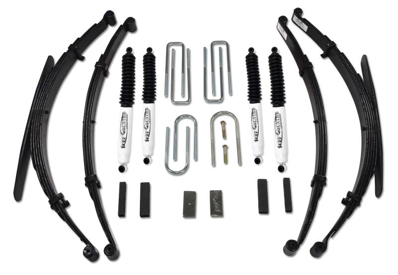 - Includes: 2) Front leaf springs, 2) Rear leaf springs, 1) Steering Block, 4) Rear u-bolts, 3) Front u-bolts, 2) Front axle bolts, 1) Transfer case drop kit, 2) Brakeline relocationg kit, 2) Axle shims and required hardware, 4) SX8000 nitro gas shocks