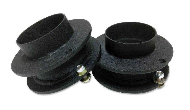 This Tuff Country Ram 2500/3500 leveling kit will lift the front end 2 inches, which will give you a level stance. Designed to install easily by inserting the two included coil spring spacers above your factory coil springs. Requires no drilling.