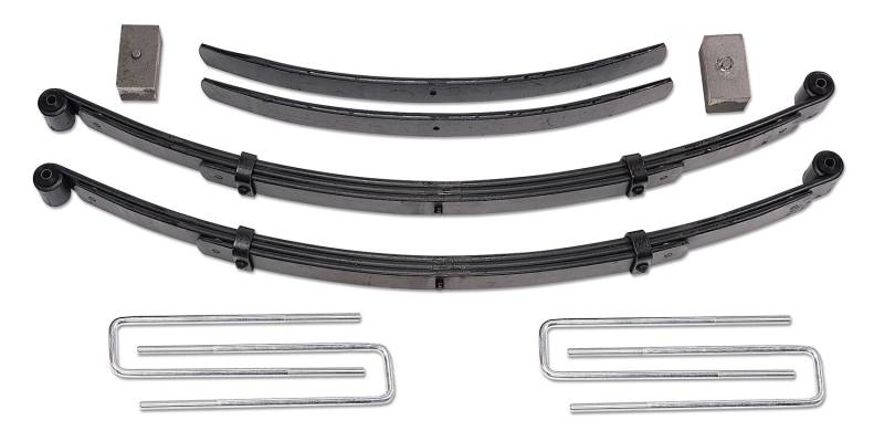 - Includes: 2) Front leaf springs, 1) Steering Block, 2) Rear add-a-leafs, 2) 2 inch rear cast iron blocks, 4) Rear u-bolts, 2) Brakeline relocationg kit, 2) Axle shims and required hardware