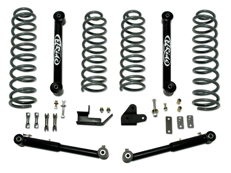 - Includes: (2) EZ-Ride coil springs - front, (2) EZ-Ride coil springs - rear, (2) Track bar bracket (front and rear), (4) EZ-Flex Lower control arms (w/poly bushings), (2) Front Brake Line Extension, (1) Hardware bag