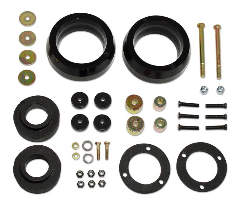 - Includes: 2) Front strut spacers, 2) Front pre-load spacers, 2) Rear coil spring spacers, 1) Hardware bag