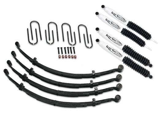 - Includes: 2) Front EZ-Ride leaf springs, 2) Rear EZ-Ride leaf springs, 1) Transfer Cases Drop Kit, 4) Rear U-bolts, 4) Front U-bolts, 1) Hardware Bag, 4) SX6000 Shocks
