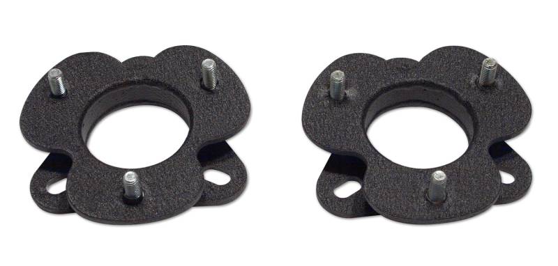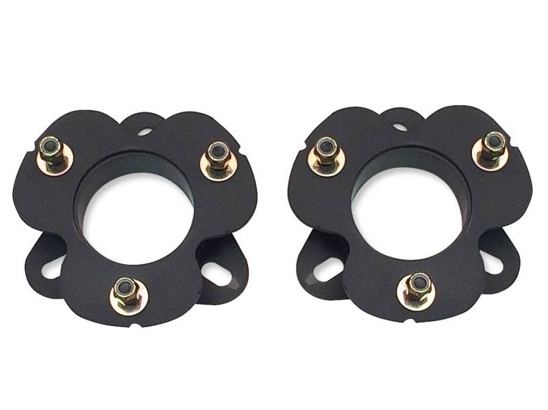 Tired of the front end of your Nissan Titan sitting lower than the rear? This Tuff Country Nissan Titan 1.5 inch/Titan XD 2 inch leveling kit lifts the front of the Titan 1.5 inches/Titan XD 2 inches to be level with the rear. Using a coil /strut spacer made of steel and manufactured in the USA, this leveling kit is designed to install above the factory Titan struts and maintain a factory ride. Factory front struts can be retained.
