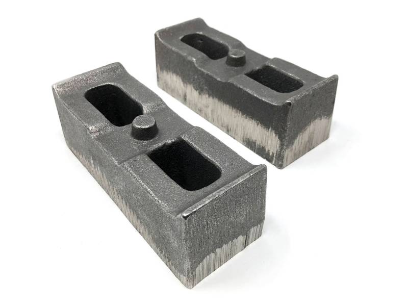 Tuff Country P/N 79062 cast iron lift blocks are designed to lift the rear end of the GM 2500HD/3500HD 4WD vehicles with leaf springs above the rear axle.