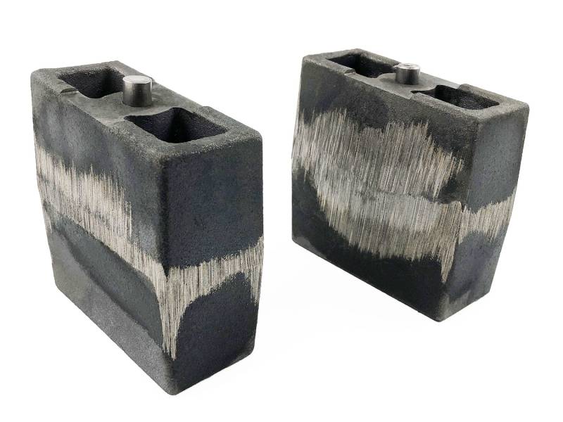Tuff Country P/N 79058 cast iron lift blocks are designed to lift the rear end of the Ram 1500 4wd vehicles with leaf springs above the rear axle.