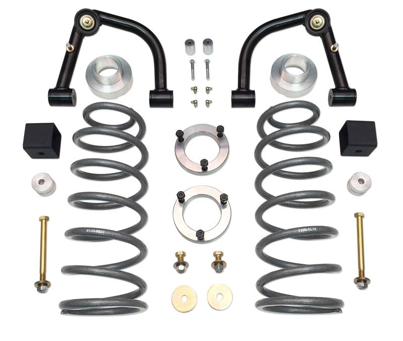 - Includes: 2) Upper Control Arms, 2) Upper strut spacers, 2) Upper strut pre-load spacers, 2) Coil Springs, 2) Rear shock extension brackets, 2) Differential drop sleeves, 1) Hardware bag
