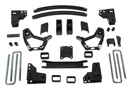 - Includes: 2) A-arm drop brackets, 1) Cross member, 3) Differential drop brackets, 4) Bump stop spacers, 2) Sway bar brackets, 2) Spindle adapters, 1) Brakeline extension kit, 4) Rear u-bolts, 2) 3 inch cast iron blocks, 2) Rear add-a-leafs, 1) Hardware bag