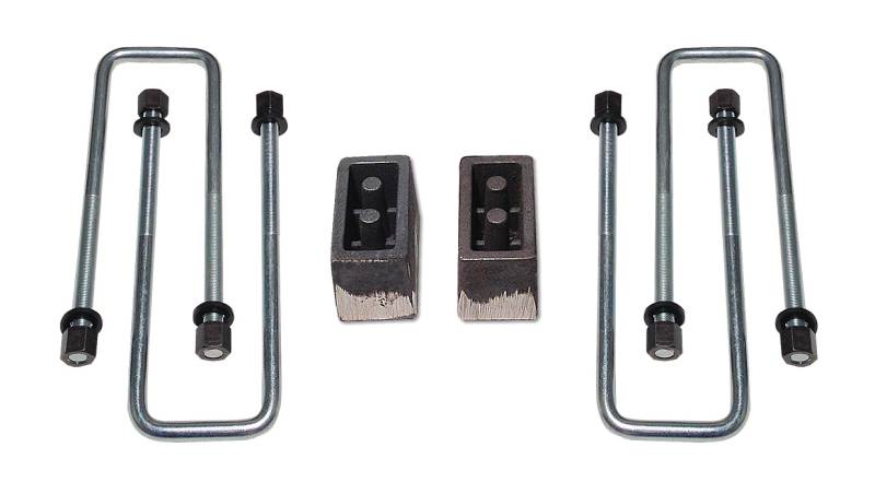 - Includes: 2) 3 Inch Cast Iron Lift Blocks, 4) Rear Axle U-bolts, 1) Hardware Bag (nuts and washers)