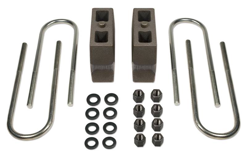 Tuff Country P/N 97074 block kit includes lift blocks and u-bolts designed to raise the rear of your Ford Truck. Installation is done by inserting the cast lift blocks between the factory rear leaf springs and axle. Extended zinc plated rear u-bolts designed specifically for the Ford Truck are used to replace the factory u-bolts.