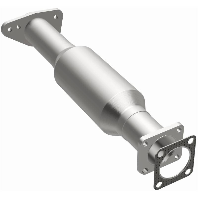 Standard Grade Direct-Fit Catalytic Converter Keep the check engine light off with MagnaFlow Standard Grade Federal/EPA Compliant Direct-Fit Catalytic Converter 23427. With features including free-flowing mandrel-bent tubing and highly corrosion resistant stainless steel construction, easily install this converter yourself using the proper tools, no cutting or welding required. MagnaFlow's state-of-the-art metrology department uses the latest 3D scanning systems during research and development, so you can be confident that your new part will fit and function like the original equipment. By replicating the OE design, the single laser fusion weld greatly reduces the possibility of a leak, and our compact, low-mass design also allows for greater thermal efficiency. MagnaFlow 23427 includes (1) Flange Gasket. This replacement part is designed to meet or exceed Federal emissions requirements set forth by the EPA, complying with legal standards for OBDII Federally registered vehicles with Federal/EPA Emission systems. Durable 308 stainless steel MIG welds
