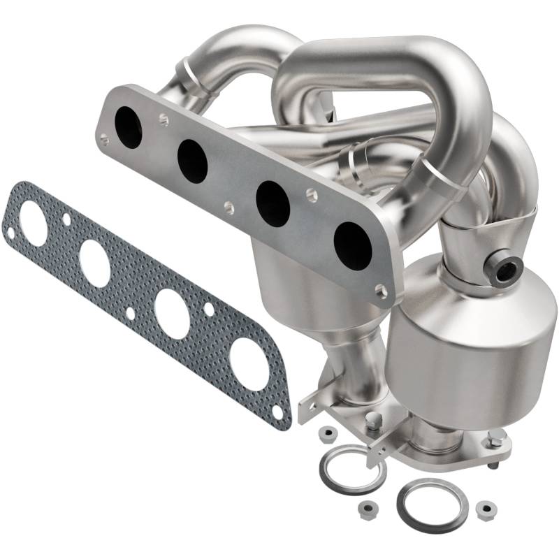 HM Grade Manifold Catalytic Converter Keep the check engine light off with MagnaFlow HM Grade Federal/EPA Compliant Direct-Fit Catalytic Converter 24066. With features including free-flowing mandrel-bent tubing and highly corrosion resistant stainless steel construction, easily install this spun body converter yourself using the proper tools, no cutting or welding required. MagnaFlow's state-of-the-art metrology department uses the latest 3D scanning systems during research and development, so you can be confident that your new part will fit and function like the original equipment. By replicating the OE spun body design, the single laser fusion weld greatly reduces the possibility of a leak, and our compact, low-mass design also allows for greater thermal efficiency. This direct-fit catalytic converter is designed specifically for the 2000-2005 Toyota MR2 Spyder and interchanges with OE parts 17104-22061 and 17104-22060. The included gaskets & hardware reduce the possibility of a leaking seal while avoiding the need to reuse corroded factory parts for installation. This replacement part is designed to meet or exceed Federal emissions requirements set forth by the EPA, complying with legal standards for OBDII Federally registered vehicles with Federal/EPA Emission systems. Your trusted source for EPA-compliant catalytic converters, providing assurance of genuine compliance while delivering quality that will last High strength 16 gauge 409 stainless steel tubing for exceptional corrosion resistance and maximum service life Expertly crafted to replicate OEM-like flow dynamics, maintaining factory performance and fuel efficiency Simplifies installation with essential gaskets and hardware being included in the box Durable 308 stainless steel MIG welds