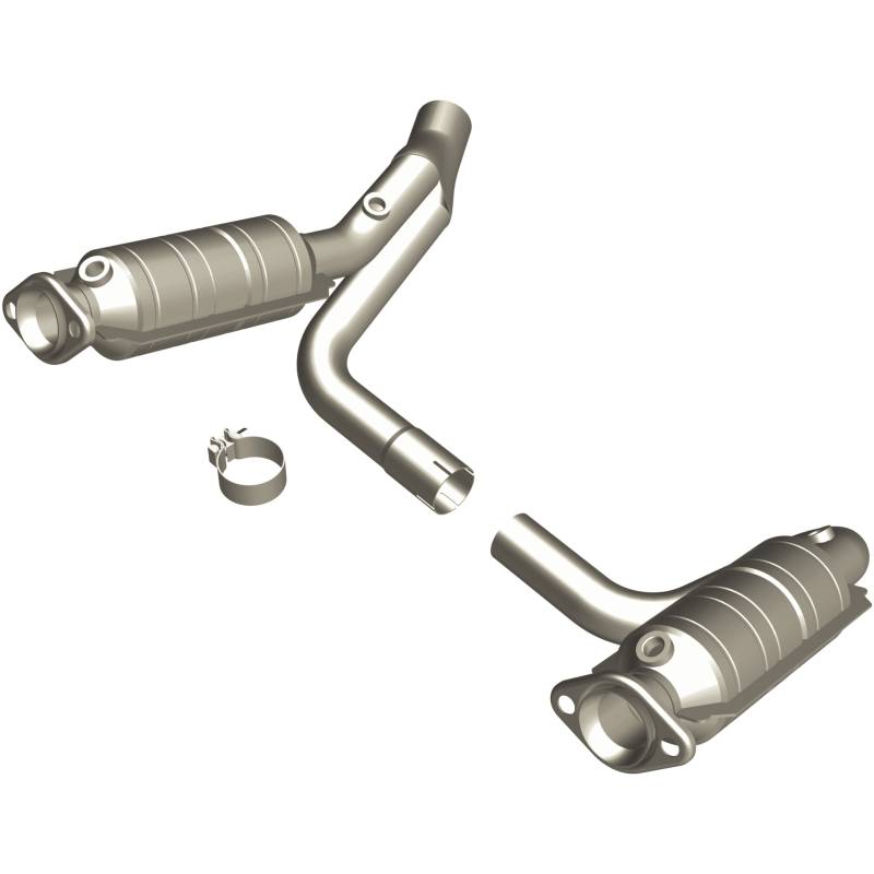 OEM Grade Direct-Fit Catalytic Converter Keep the check engine light off with MagnaFlow OEM Grade Federal/EPA Compliant Direct-Fit Catalytic Converter 49463. With features including free-flowing mandrel-bent tubing and highly corrosion resistant stainless steel construction, easily install this converter yourself using the proper tools, no cutting or welding required. MagnaFlow's state-of-the-art metrology department uses the latest 3D scanning systems during research and development, so you can be confident that your new part will fit and function like the original equipment. By replicating the OE design, the single laser fusion weld greatly reduces the possibility of a leak, and our compact, low-mass design also allows for greater thermal efficiency. This Direct-Fit Catalytic Converter is designed to fit the 2005-2006 Dodge Dakota 4.7L & 2006 Mitsubishi Raider 4.7L. MagnaFlow 49463 includes (1) Torca Clamp and interchanges with OE parts 5201 3550AA, 5201 3550AB, 5201 3780AA, 5201 3780AB. This replacement part is designed to meet or exceed Federal emissions requirements set forth by the EPA, complying with legal standards for OBDII Federally registered vehicles with California or Federal/EPA Emission systems. Mandrel bent tubing retains OEM-like design and geometry, ensuring smooth exhaust flow for peak fuel economy and engine operation