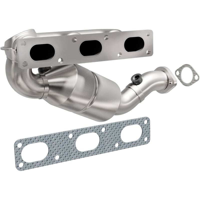 HM Grade Manifold Catalytic Converter Keep the check engine light off with MagnaFlow HM Grade Federal/EPA Compliant Direct-Fit Manifold Catalytic Converter 50466. With features including free-flowing mandrel-bent tubing and highly corrosion resistant stainless steel construction, easily install this converter yourself using the proper tools, no cutting or welding required. MagnaFlow's state-of-the-art metrology department uses the latest 3D scanning systems during research and development, so you can be confident that your new part will fit and function like the original equipment. By replicating the OE design, the single laser fusion weld greatly reduces the possibility of a leak, and our compact, low-mass design also allows for greater thermal efficiency. This Direct-Fit Manifold Catalytic Converter is designed to fit the 1999-2000 BMW 528i 2.8L. MagnaFlow 50466 includes (2) Bolts, (2) Flange Gaskets, (2) Nuts and interchanges with OE parts 11 62 1 732 942, 11 62 7 503 936. This replacement part is designed to meet or exceed Federal emissions requirements set forth by the EPA, complying with legal standards for OBDII Federally registered vehicles with Federal/EPA Emission systems. Durable 308 stainless steel MIG welds