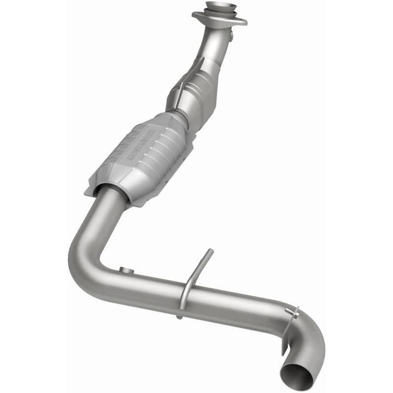 OEM Grade Direct-Fit Catalytic Converter MagnaFlow OEM Grade Federal/EPA Compliant Direct-Fit Catalytic Converter 51416 helps keep the check engine light off. DIY installation is easy with the proper tools (no cutting or welding required). With features including mandrel-bent tubing to eliminate flow restrictions and stainless steel construction to resist corrosion, you can have confidence in the quality of this catalytic converter. Using state-of-the-art 3D scanning systems in the design process, the MagnaFlow metrology department ensures this new part to fit and function like the original equipment. Designed to fit the 1999-2003 Ford F-150 and 2004 Ford F-150 Heritage, this direct-fit catalytic converter also interchanges with OE part XL3Z-5E212-BC. This replacement part is designed to meet or exceed Federal emissions requirements set forth by the EPA, complying with legal standards for OBDII Federally registered vehicles with California or Federal/EPA Emission systems. Your trusted source for EPA-compliant catalytic converters, providing assurance of genuine compliance while delivering quality that will last Mandrel bent tubing retains OEM-like design and geometry, ensuring smooth exhaust flow for peak fuel economy and engine operation OE-sized barbed exhaust hangers made from corrosion-resistant 410 stainless steel, designed to reduce noise and vibration High strength 16 gauge 409 stainless steel tubing for exceptional corrosion resistance and maximum service life Expertly crafted to replicate OEM-like flow dynamics, maintaining factory performance and fuel efficiency