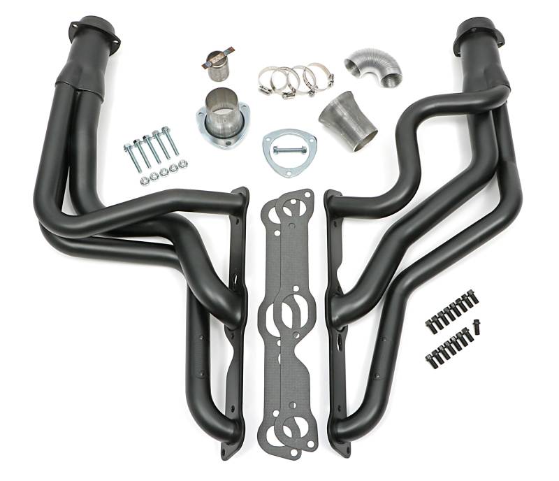 Handcrafted, Mild Steel Construction. Long Tube Header Design Provides Excellent Top-End Horsepower and Torque. Ball & Socket Collector Design requires No Gasket, and Allows For More Exhaust System Misalignment than Old School, Gasket-Style Header Collectors Includes All The Necessary Mounting Hardware, Gaskets and Reducers (exhaust adapters) Limted Lifetime Warranty On Construction, Five Year Warranty on Factory-Applied Header Coating!Details