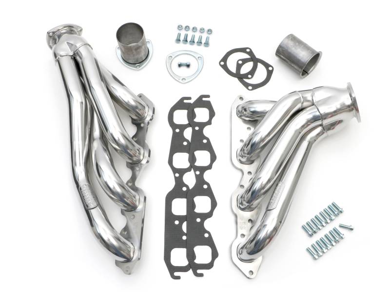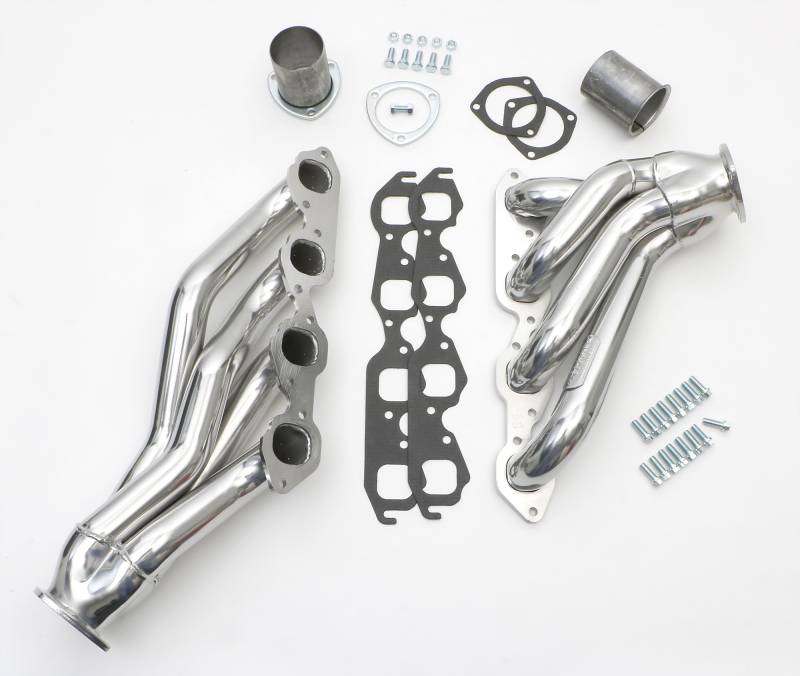 Silver 2 in. Mid-Length Headers for 1970-81 Camaro with 396-502 Handcrafted, Mild Steel Construction. The Mid-Length Tube Header Design Provides Significantly More Low and Mid-range Power than Cast Manifolds, and Provide Better Ground Clearance And Component Compatibility Than Long Tube Headers. Classic 3-Bolt Gasket-Style Header Collectors Includes All The Necessary Mounting Hardware, Gaskets and Reducers (exhaust adapters) Limted Lifetime Warranty On Construction, Five Year Warranty on Factory-Applied Header Coating!
