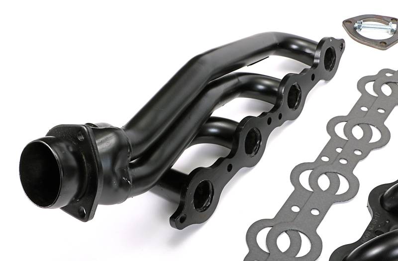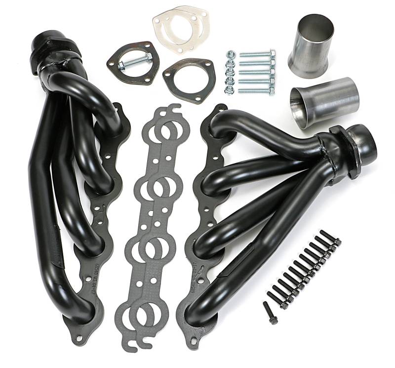 Mid-Length LS Swap Headers For 1964-67 GM A-Body Cars Handcrafted, Mild Steel Construction. The Shorter Tube Header Design Provides Significantly More Low and Mid-range Power than Cast Manifolds, and Provide Better Ground Clearance And Component Compatibility Than Long Tube Headers. Ball & Socket Collector Design requires No Gasket, and Allows For More Exhaust System Misalignment than Old School, Gasket-Style Header Collectors Includes All The Necessary Mounting Hardware, Gaskets and Reducers (exhaust adapters) Limted Lifetime Warranty On Construction, Five Year Warranty on Factory-Applied Header Coating!