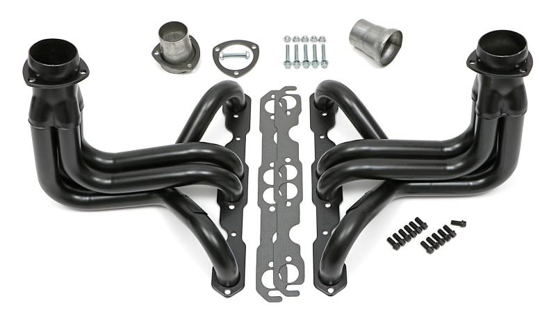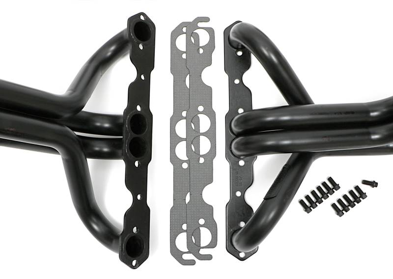 Long-Tube Headers For '63-82 Corvette 283-400 with Side-Pipes Handcrafted, Mild Steel Construction. Long Tube Header Design Provides Excellent Top-End Horsepower and Torque. Ball & Socket Collector Design requires No Gasket, and Allows For More Exhaust System Misalignment than Old School, Gasket-Style Header Collectors Includes All The Necessary Mounting Hardware, Gaskets and Reducers (exhaust adapters) Limted Lifetime Warranty On Construction, Five Year Warranty on Factory-Applied Header Coating!