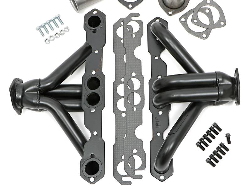 1-1/2 in. Block Hugger Headers For 283-400 SB Chevy Engines Handcrafted, Mild Steel Construction. Classic Block Hugger Style Is Perfect For Street Rods, and Cramped Custom Builds That Do Not Have Enough Clearance For Mid-Length or Long Tube Headers. Classic 3-Bolt Gasket-Style Header Collectors Includes All The Necessary Mounting Hardware, Gaskets and Reducers (exhaust adapters) Limted Lifetime Warranty On Construction, Five Year Warranty on Factory-Applied Header Coating!