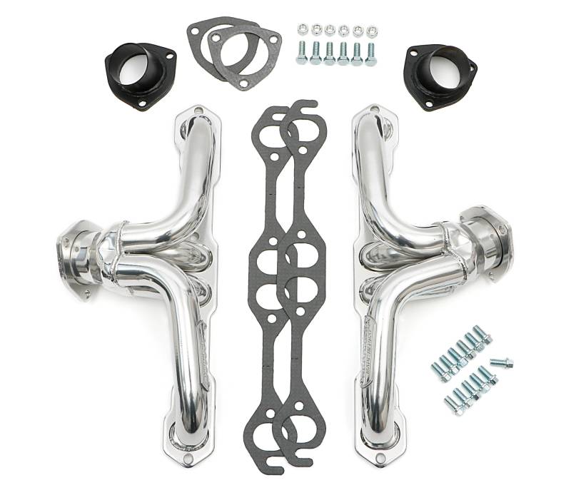 Silver Super-Short Headers For 67-81 Camaro/64-77 A-Body, 283-400 Handcrafted, Mild Steel Construction. These Super-Shorty Style Headers Are Perfect For Hard-To-Fit, Classic Camaro and A-Body Cars with Very Limited Space, as well as, Street Rods and Cramped Custom Builds That Do Not Have Enough Clearance For Mid-Length or Long Tube Headers. Classic 3-Bolt Gasket-Style Header Collectors Includes All The Necessary Mounting Hardware, Gaskets and Reducers (exhaust adapters) Limted Lifetime Warranty On Construction, Five Year Warranty on Factory-Applied Header Coating!