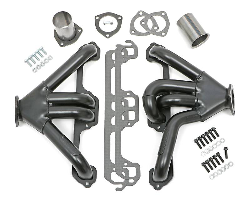 The Lowest Profile Header On The Market The Flat, Clamshell Style Collector Has an Extremely Low Profile So they'll Fit in Nearly Any Street Rod or Custom Build With Little Clearance. The High Volume Flat Collector Offers Improved Exhaust Flow For Far Superior Performance Over Classic Block Hugger Models. Includes Classic, 3-Bolt Gasket-Style Header Collectors, Mounting Hardware, Gaskets and Reducers (exhaust adapters) Limted Lifetime Warranty On Construction, Five Year Warranty on Factory-Applied Header Coating!Details