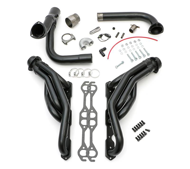 MID-LENGTH E.O. HEADERS, '88-98 1/2-3/4 TON GM TRUCKS With 5.0-5.7L Specially Designed To Provide Additional Clearance For Larger, Close-Ratio (Quick Ratio) Steering Boxes The Mild Steel, Mid-Length Tube Header Design Provides Significantly More Low and Mid-range Power than Cast Manifolds, and Provide Better Ground Clearance And Component Compatibility Than Long Tube Headers. Ball & Socket Collector Design requires No Gasket, and Allows For More Exhaust System Misalignment than Old School, Gasket-Style Header Collectors Includes All The Necessary Mounting Hardware, Gaskets and Reducers (exhaust adapters) Limted Lifetime Warranty On Construction, Five Year Warranty on Factory-Applied Header Coating!